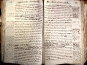 Circa 1688 Manuscrit composé de 15 cahiers assemblés par des lacets et reliés entre eux par une cordelette de lin (177 feuillets in-folio (230 x 355 mm). Calligraphie très lisible, écrite à l’encre noire et à l’encre rouge, réglé au crayon en marge. Quelques déchirures, manques dans les premiers feuillets. Manuscrit très fortement raturé et surchargé. Composition - Avant-propos, 6ff.- Suivi de : « Formulaire de la profession reguliere des Chevaliers de Malte » (à l’encre rouge) 1ff.- Suivi de : « Oraisons que le prestre dit avant la profession ». En latin aux encres rouges et noires, 2ff.- Suivi de : « La forme de Donner l’ordre de Chevalerie, Les oraisons finies, le prestre commence la messe et sarreste avant levangil alors celui quy se dispose a recevoir l’habit se leve de devant l’autel, et va se mettre a genoux devant le chevalier quy la luy doit donner : pour en recevoir premierement lordre de chevalerie lequel luy dit (…), 4ff.- Suivi de : « Troisieme section contenant les paroles qui se prononcent en faisant les vœux », 1page. - suivi de : « Quatrième section contenant la forme de donner la croix et l’habit régulier de l’ordre et les oraisons quiserecitent pour conclusion de la cérémonie » 2 ff.- Suivi de : « Oraison après profession » (à genoux devant l’autel), 3ff.- Suivi de : « Reflexions dun Chevalier de Malte Religieux de l’ordre militaire des hospitaliers de Saint [Jean] de jerusalem. Sur la grandeur et les devoirs de son Etat ». 326 pages numérotées, dont les 4 derniers blancs. Le dernier marqué au verso d’une autre écriture : « Recu Ch de Malthe dan langue de provence le premier 7 bre 1572. »Défauts : Saut de pagination entre la dernière page de table marquée 293 à la partie commençant par : « réflexion d’un chevalier » paginée 303.